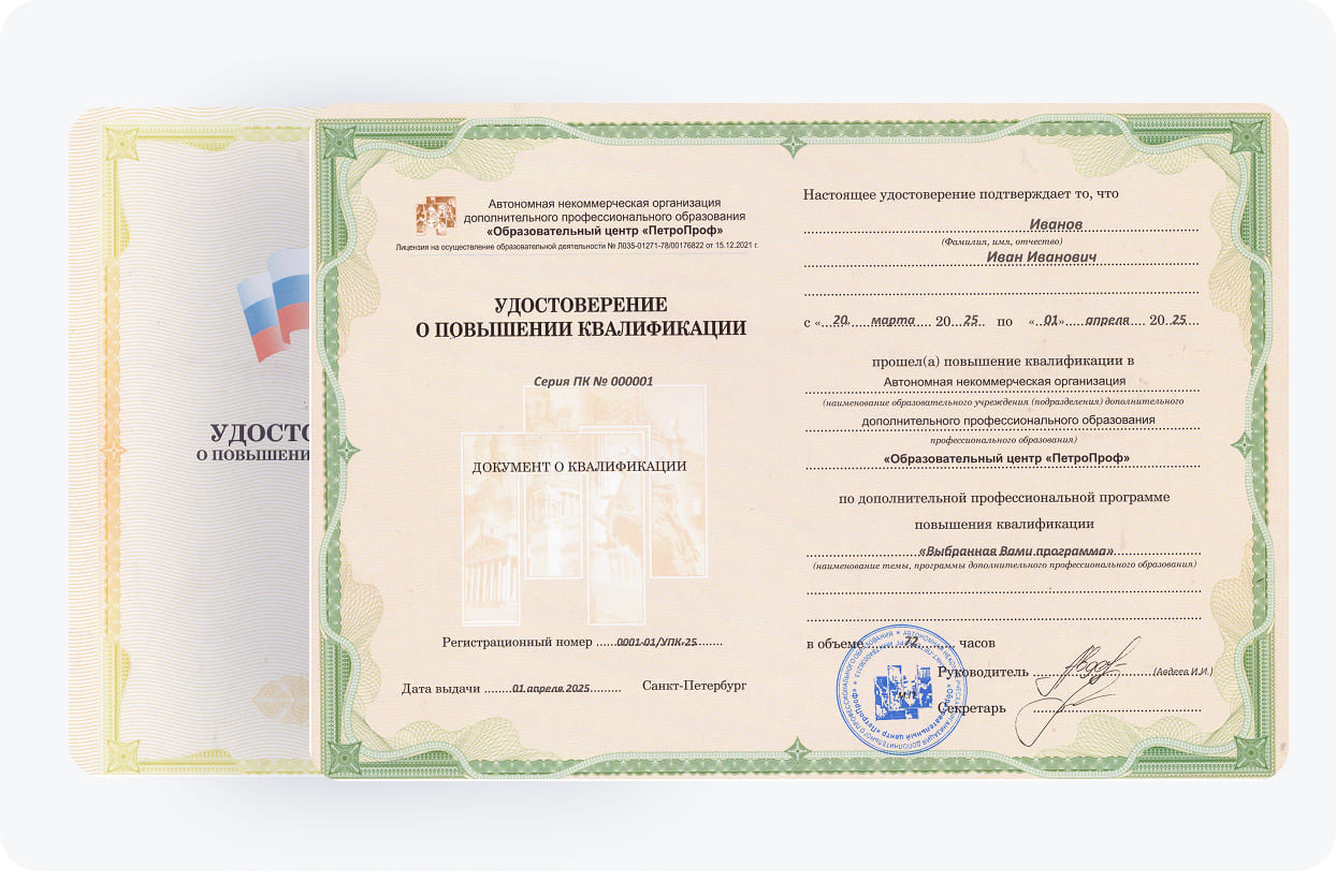 Обязательным заключительным этапом обучающего процесса является итоговая аттестация слушателей. Таким образом, они подтверждают полученные знания и обновленные профессиональные компетенции. Им также выдаются дипломы, которые потребуются при трудоустройстве в выбранные предприятия и организации. Эти документы действительны на территории всей страны и отражают наличие соответствующего образования. Следовательно, они станут весомым преимуществом при ведении деятельности и карьерном росте.